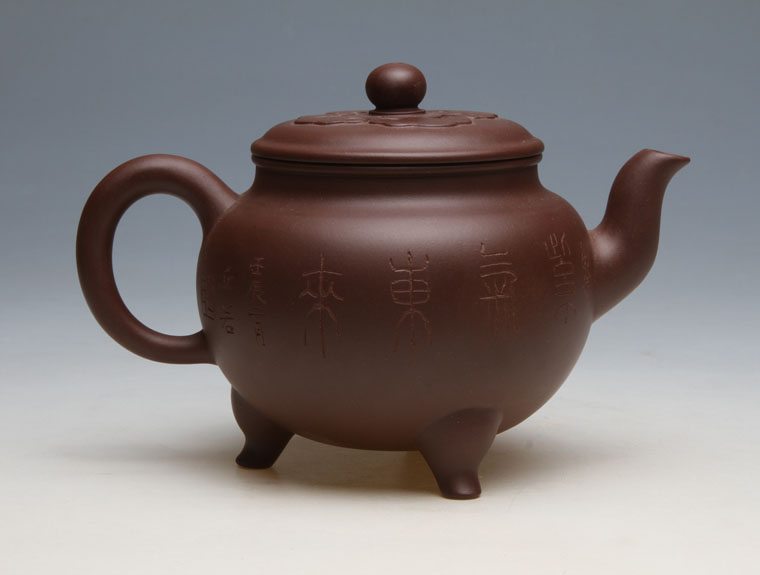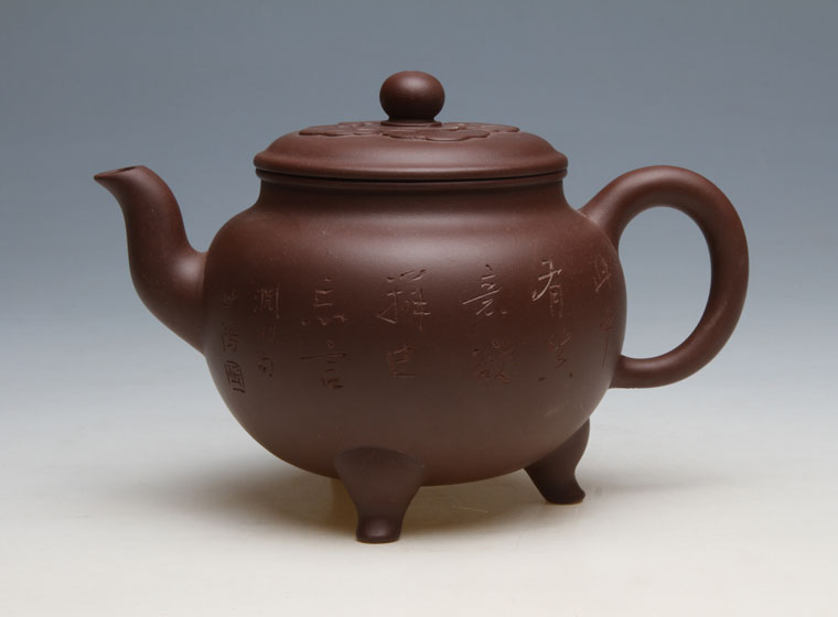 大彬如意是一款经典的器型,为明朝时大彬设计制作而成,其时有“明代良陶让一时”之说,时大彬设计此款壶既有“事事如意”之意,又有以三足撑体的“鼎立”寓意。盖呈凸圆形,为压盖。盖面贴有四瓣如意纹饰,对称分布,厚度约为1毫米,工艺精良,扁圆形纽,;盖中有一出气孔通纽顶,盖内孔大,顶孔小,孔圆规整,做工讲究;三弯嘴内敛,气息庄端且聚气,大彬如意器型古朴雅致,大气不洪,完全展现了时大彬的制壶风格。
