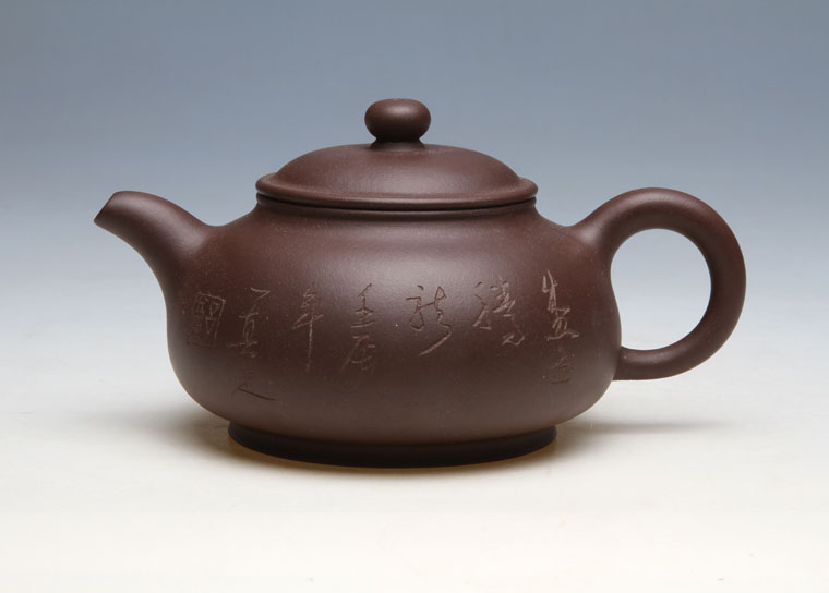 | 作品介绍:据《阳羡砂壶图考》记载,潘仕成字德畬,为清道光广东番禺人。先世以盐贾起家,累官至两广盐运使。由于潘氏家传素嗜饮茶,便在宜兴订制专属紫砂壶,一则自用,一则往还馈赠。潘氏订制的紫砂壶形制固定,且惯于将印款落于盖沿之上,壶底及他处反而不落款,所用印款均为阳文篆字「潘」印。由于潘氏声名远播,世人乃将此一形制紫砂壶称为[潘壶]