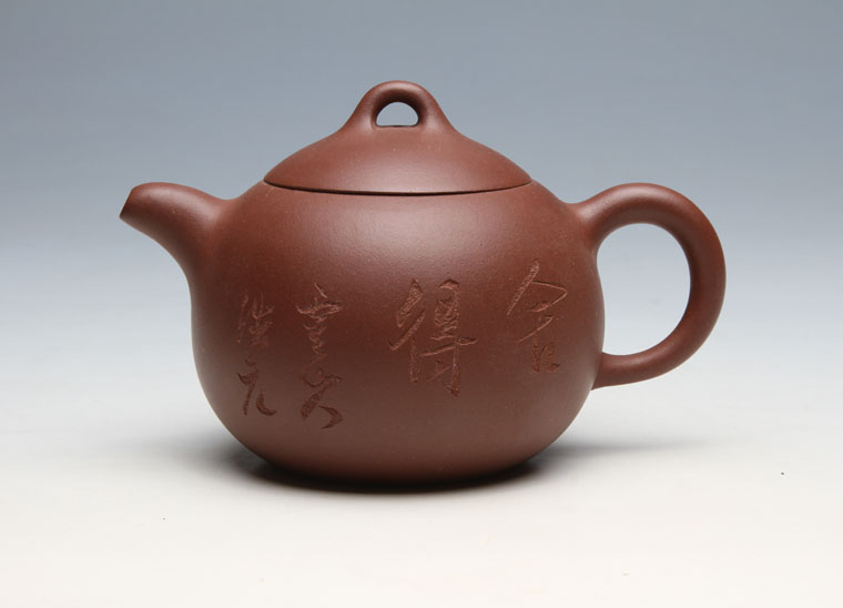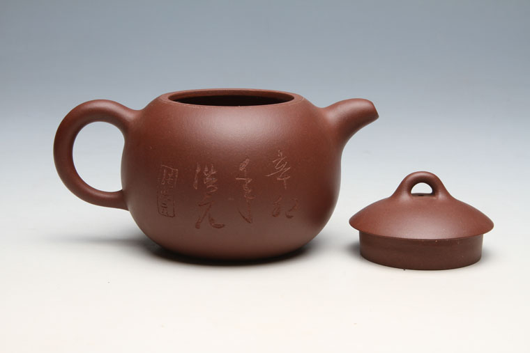 匏瓜壶是曼生十八式之一,与曼生葫芦有异曲同工之妙,然其独特之处亦是其他造型无可比拟的,把玩此壶有如返璞归真之意,此壶最初用意是以解相思之若。 曼生为官之后因为清朝相关制度规定有些官员是不可以带家眷在身边的,所以曼生只能与妻分隔两地,无法长相厮守,因为曼生爱壶成痴,便想到以壶寄相情,然不管怎么设计都没有一把让自己中意的,有一次他无意中读到曹植《洛阳赋》中一句话:叹匏瓜之无匹兮,咏牵牛只独勤,被其中的匏瓜吸引,仔细研究得之这是葫芦的变种,又叫瓢葫芦,更有意思的是在古代匏瓜是男子无妻独处的象征,这正与此时曼生的处境极为相符,于是找来一匏瓜日日观察创作出此款匏瓜壶。 曼生寄情于物,表达了对妻子的思念,因而紫砂壶也是世人情感的一种寄托!