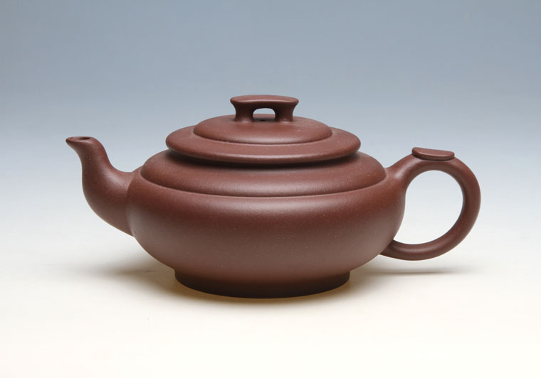 江南多水,长河上的斜拉桥、曲拱桥,村前屋后的木桥、石桥、竹桥,这些连接此岸与彼岸的形态各异的纽带,随处可见,这些江南水乡最常见的元素被用到的紫砂壶上,别有一番韵味,作品的最初创作者是顾景舟,壶身呈扁圆形,折肩圈足,曲流环状柄,压盖式,桥型钮。此壶造型端庄、秀美、新颖脱俗,在柄的环状之上稍加改动即可安放拇指,又与壶盖钮相呼应,真可谓匠心独运、设计巧妙。盖与肩部均以凹线、阶状分割空间,自上而下视之,有一环扣一环水波荡漾之感。壶盖上的钮正像一座小桥矗立于湖水之中,上新桥壶或由此而得名。